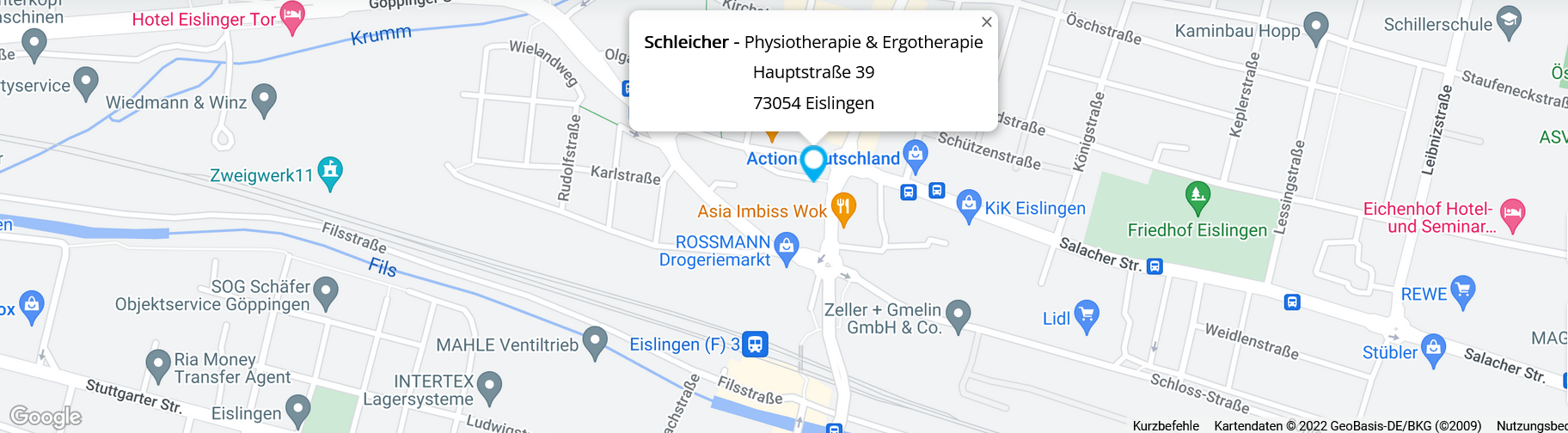 Unsere Praxis für Physio- und Ergotherapie befindet sich in der Stadtmitte von Eislingen bei Göppingen. Auf über 300m2 beraten und behandeln wir hier seit 2006 Patienten mit verschiedenen Beschwerdebildern. Mit einem Team aus 13 Therapeuten betreuen wir unsere Patienten nach individuell erstellten Behandlungsplänen auf Basis neuester wissenschaftlicher Erkenntnisse.